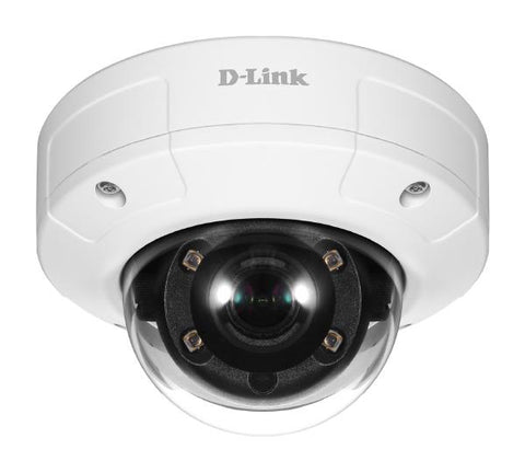 D-Link Vigilance 5MP Day & Night Outdoor Mini Dome Vandal-Proof PoE Network Camera 5 Megapixel resolution, up to 2560x1920 H.265, H.264, and MJPEG codec support Compact and robust housing IP66 weatherproof and IK10 vandal proof Built-in IR LED illumination Wide Dynamic Range image enhancement Built-in 802.3af PoE