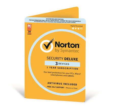 Norton Security Deluxe - 3 license multi device - valid for 12 months Norton Security Deluxe provides protection for the multidevice, on-the-go way your customers live today. They pay bills on their smartphones, shop on their tablets, keep important financial information on their laptops and need to protect their personal information and financial data from viruses, scams and online threats. Provides real-time protection against existing and emerging malware including ransomware and viruses. Helps protect your finances, privacy and personal information. Alerts you about risky Android apps before you download them, with our award-winning technology. Protects better and faster than the competition. 100% guarantee: From the moment you subscribe, a Norton expert is available to help keep your devices virus-free, or give you a refund